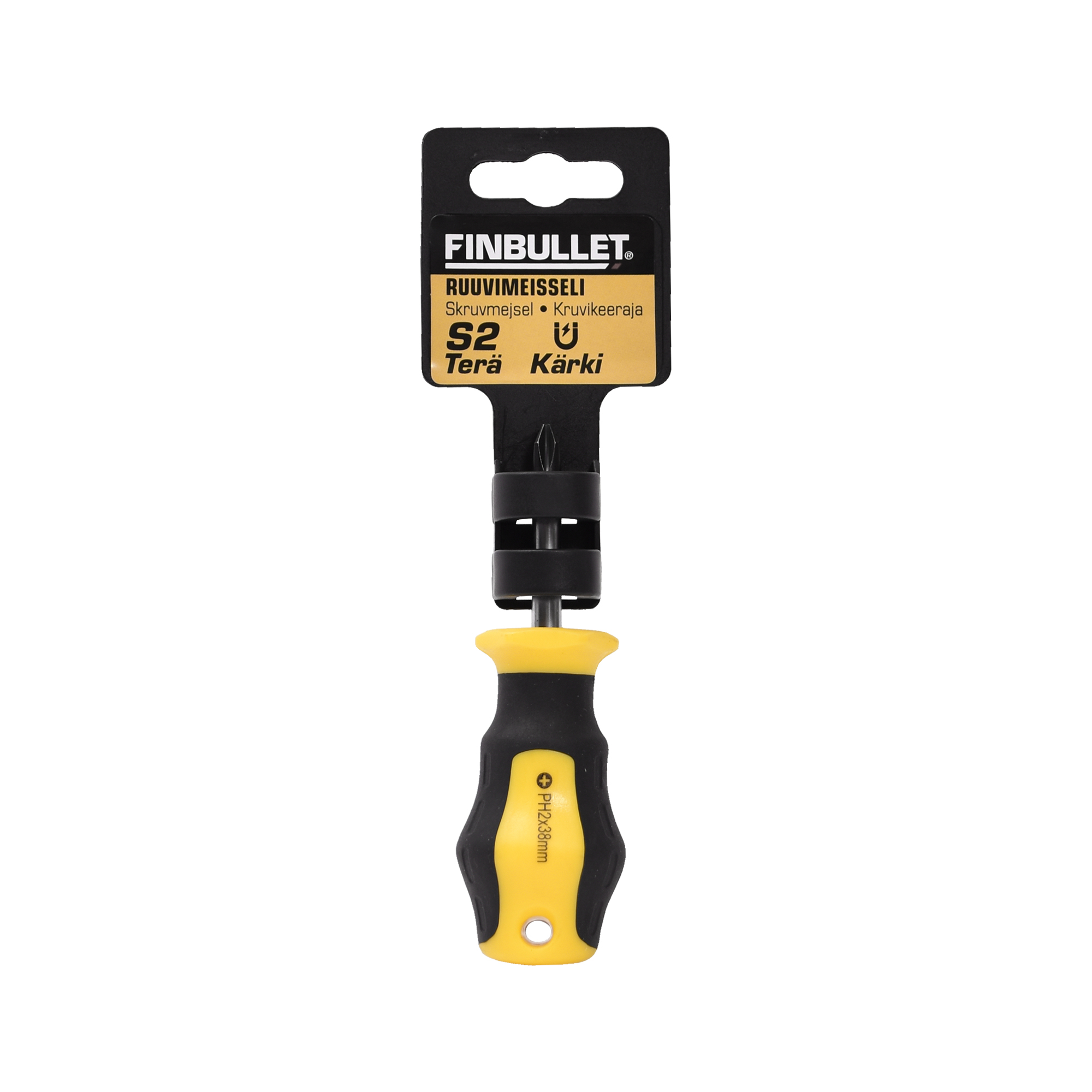 Finbullet ruuvimeisseli PH2 x 38 mm. Ruuvimeisseli on satiinikromattu ja siinä on käytännöllinen magneettikärki. Materiaali S2 terästä.