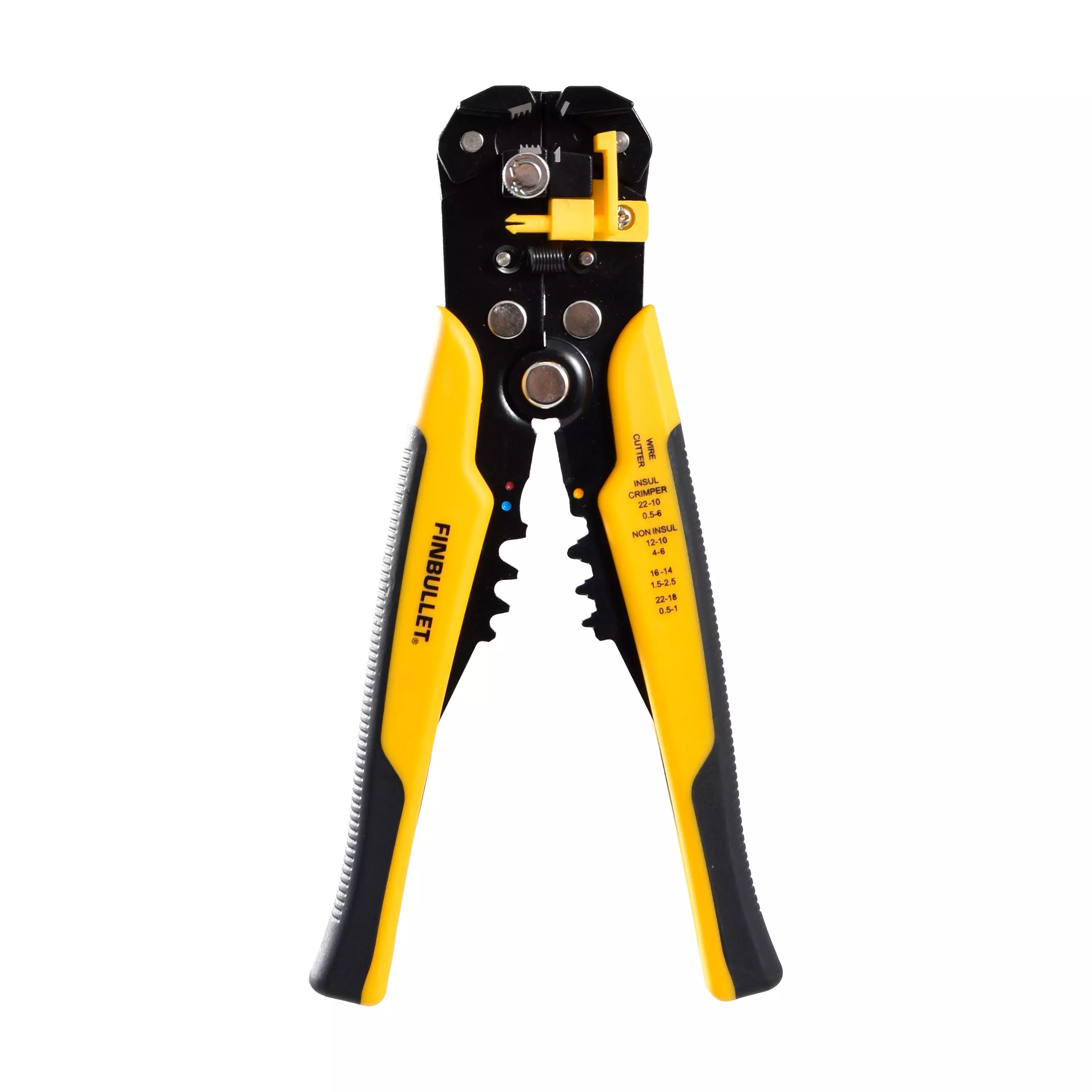 Finbullet automaattikuorintapihti 205 mm automaattisella säätimellä. Soveltuu 0,5 - 6 mm paksuisille johdoille. Materiaali metalli, muovi.