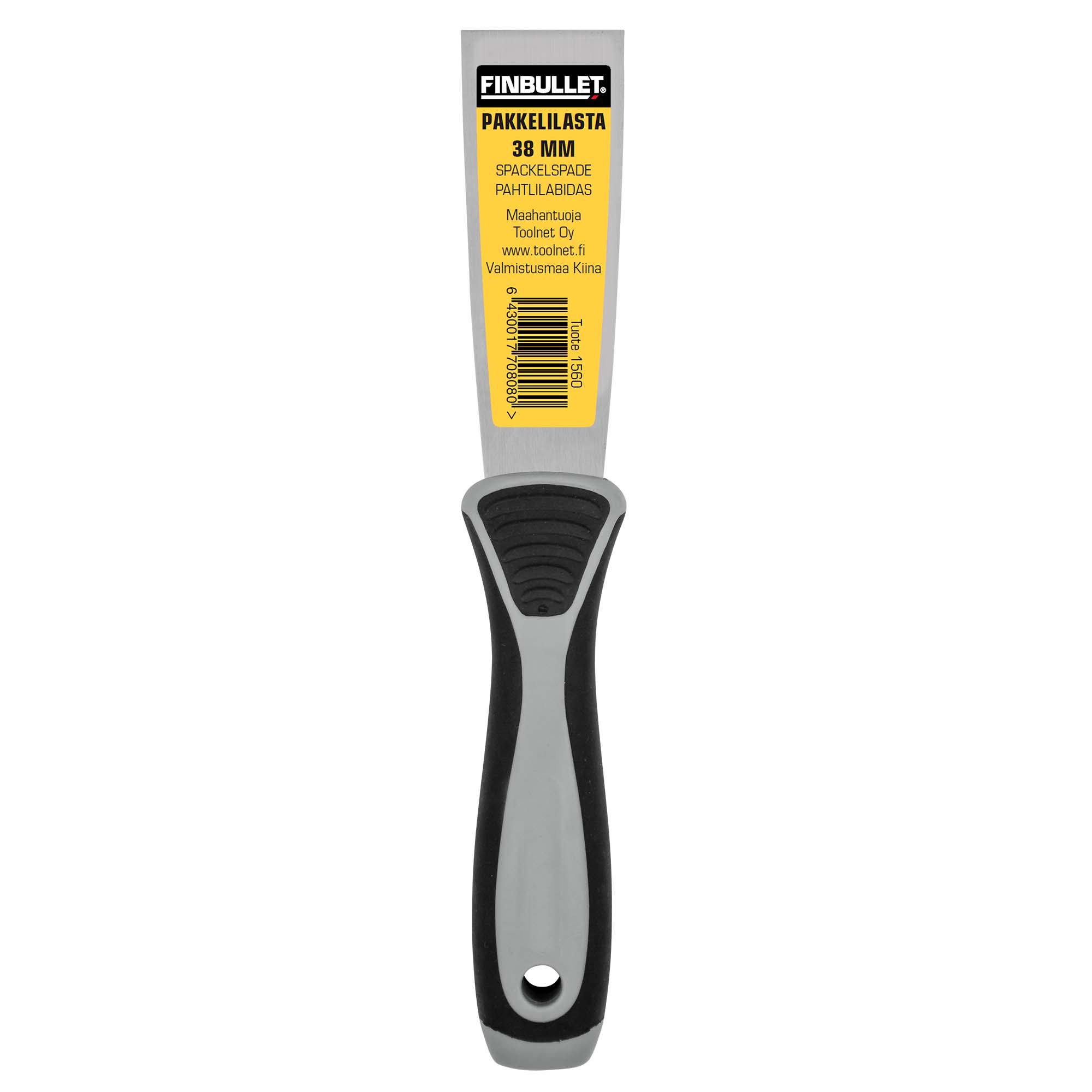 Teräspakkelilasta tukevalla kahvalla.