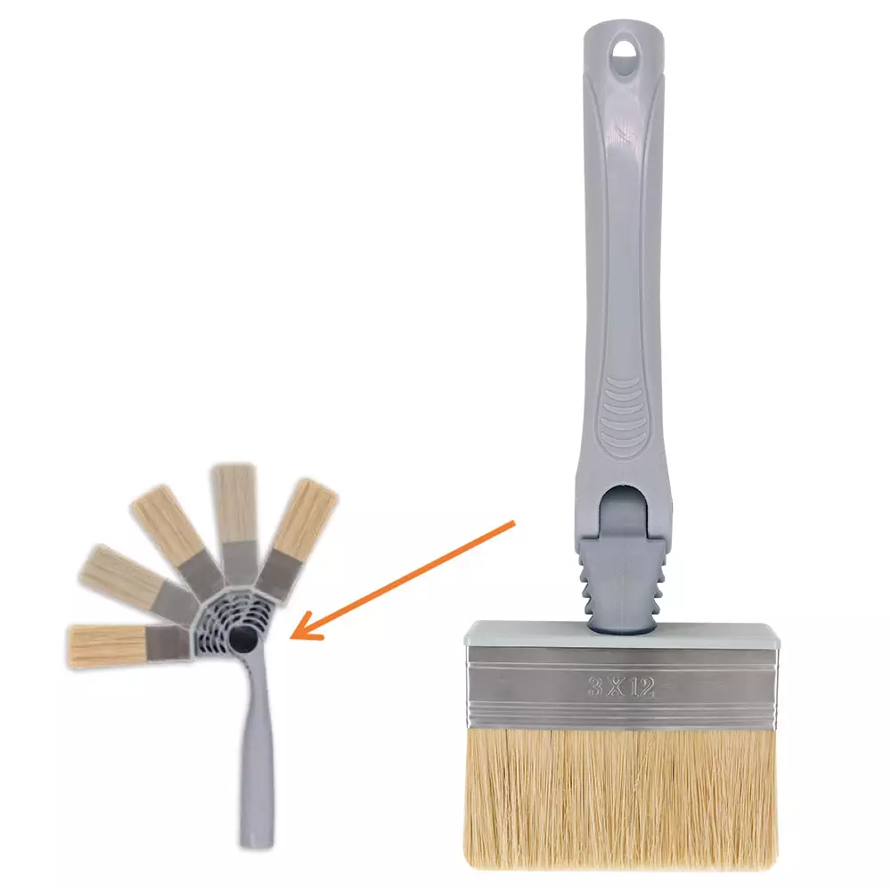 Kätevä ja monipuolinen sivellin, jonka kulmaa voidaan säätää tarpeen mukaan. Kahvan yläosassa sijaitsevan painikkeen avulla sivellinosa kääntyy ja lukittuu haluttuun kulmaan, mikä helpottaa maalaamista vaikeasti saavutettavissa paikoissa. Sopii myös käytettäväksi jatkovarren kanssa, mikä lisää ulottuvuutta ja työskentelymukavuutta.